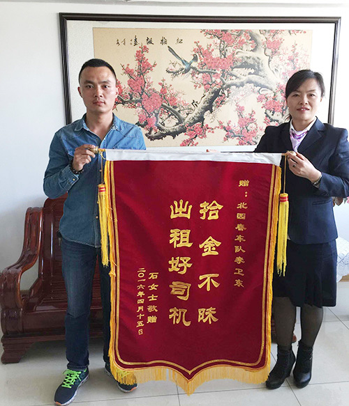 北園春運輸公司出租車女司機(jī)拾金不昧送還失物